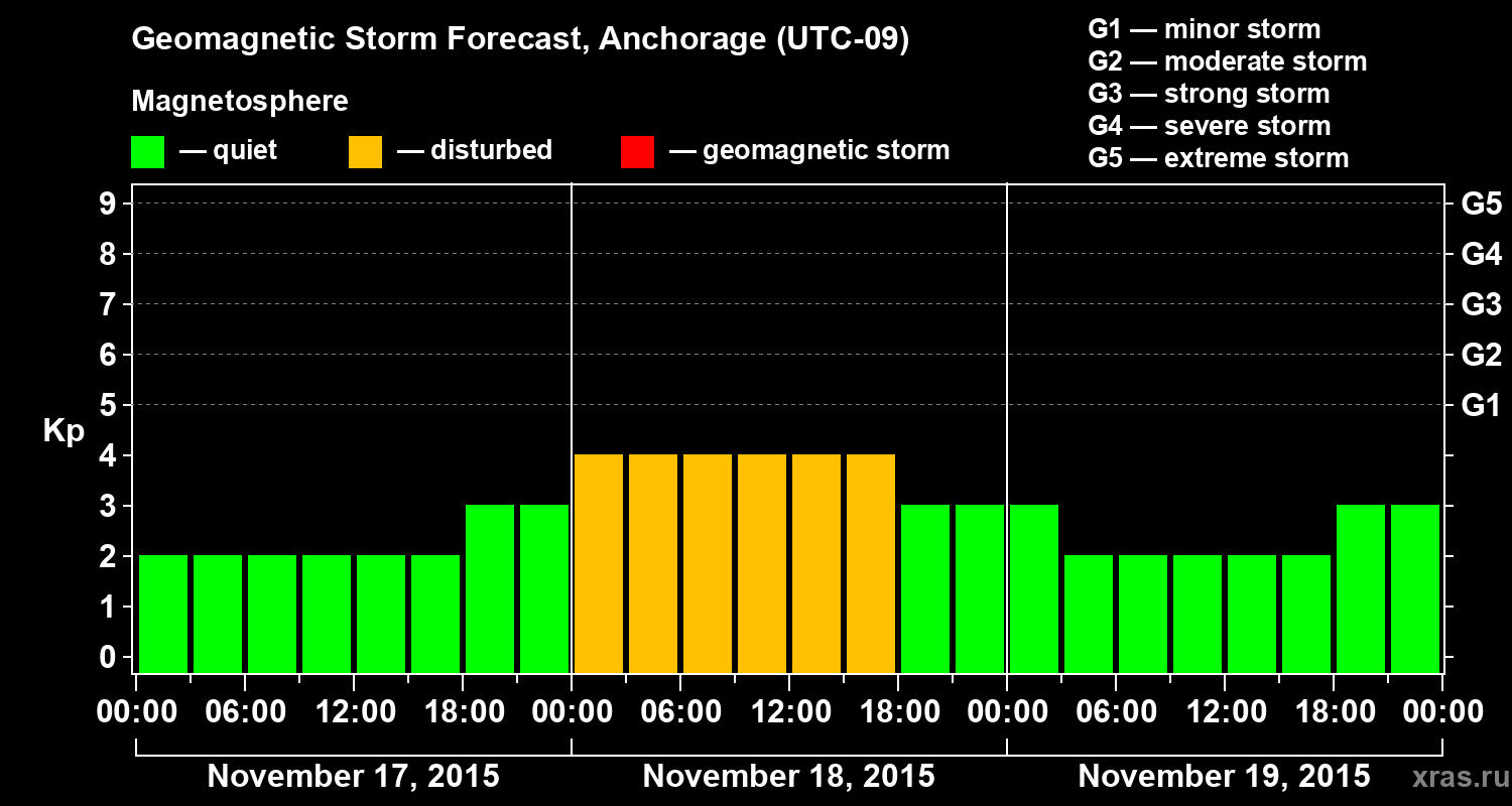 Geomagnetic storm forecast in Anchorage for Nov 17, 2015
