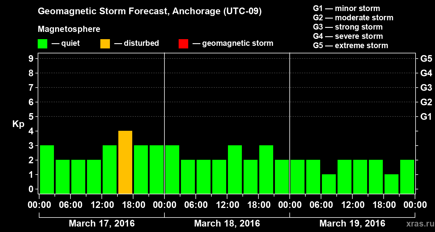Geomagnetic storm forecast in Anchorage for Mar 17, 2016