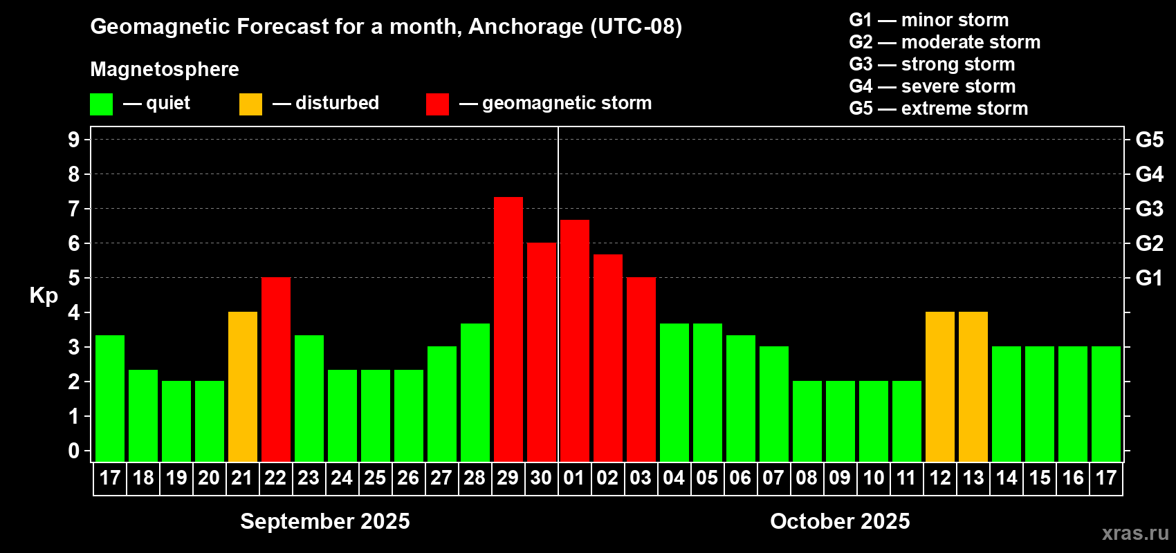 Geomagnetic storm forecast in Anchorage for Sep 17, 2025