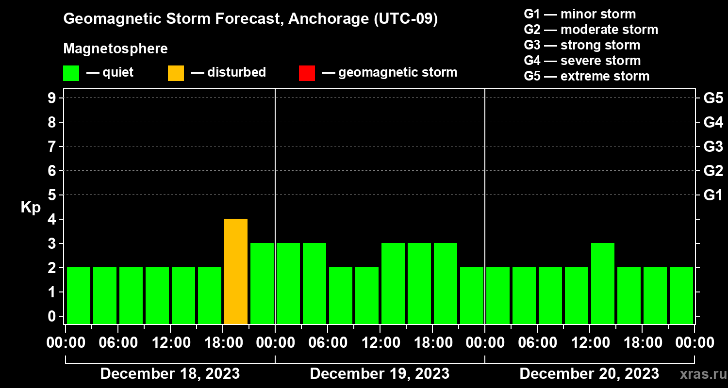 Geomagnetic storm forecast in Anchorage for Dec 18, 2023