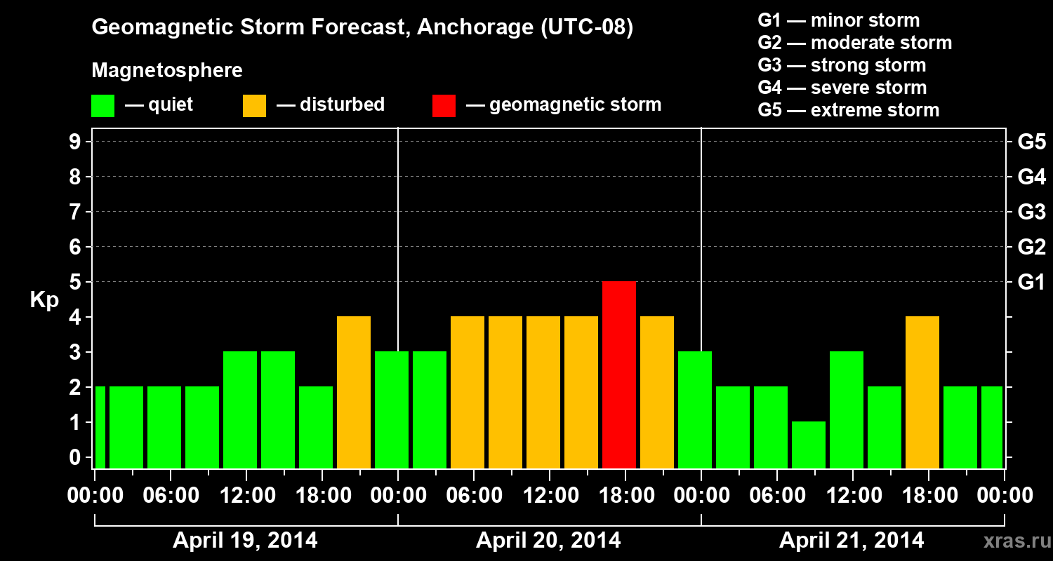Geomagnetic storm forecast in Anchorage for Apr 19, 2014