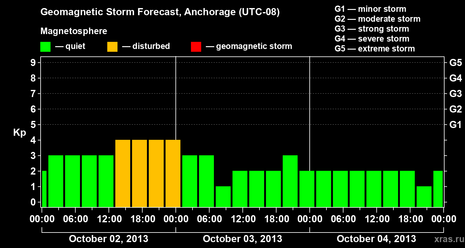 Geomagnetic storm forecast in Anchorage for Oct 02, 2013