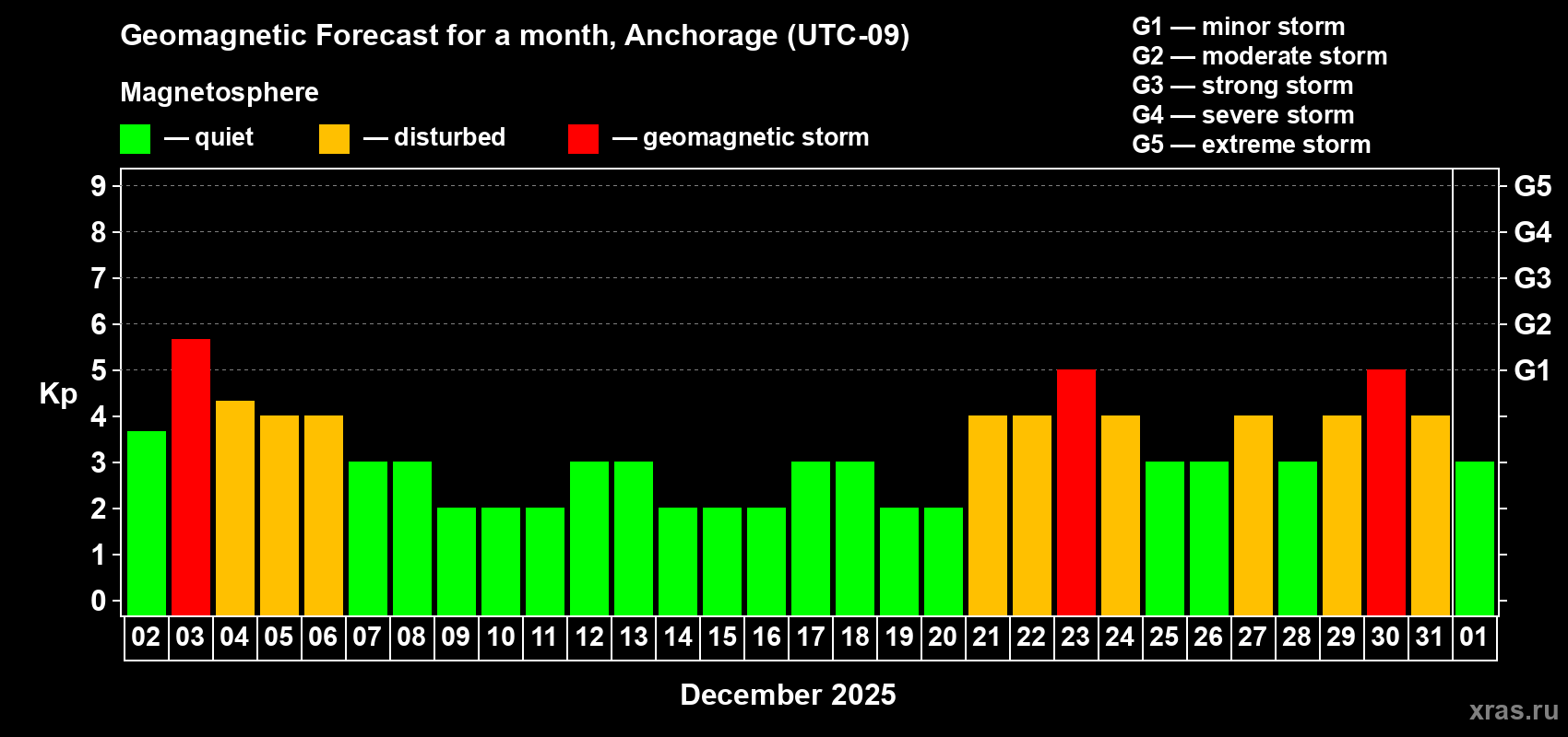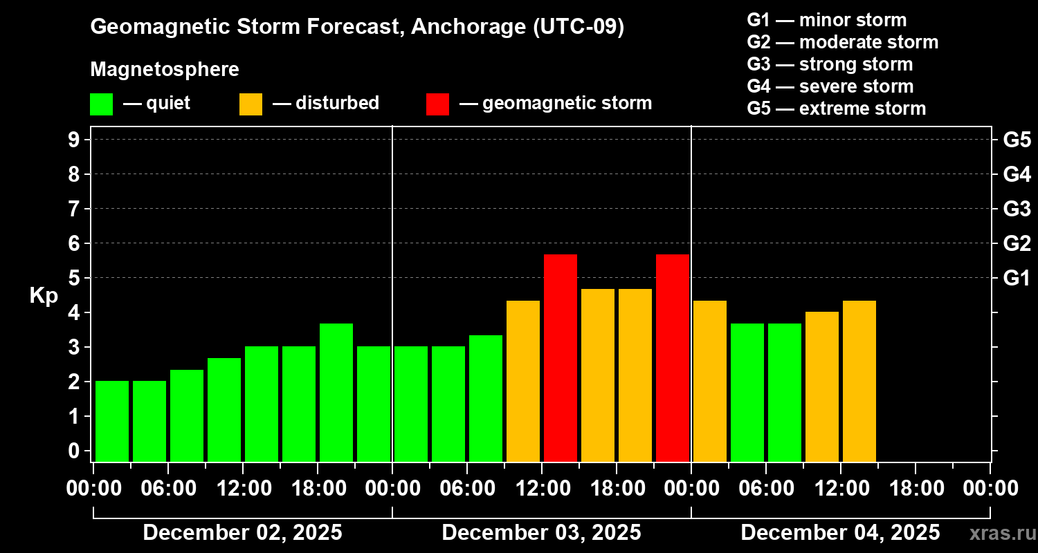 Geomagnetic storm forecast in Anchorage for Dec 02, 2025
