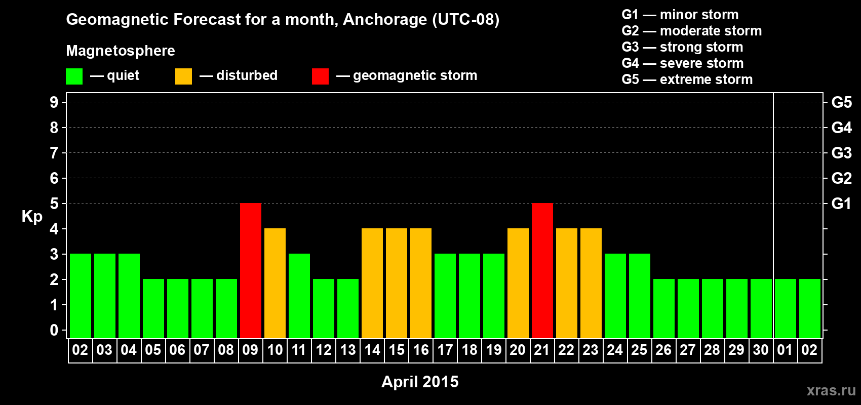 Geomagnetic storm forecast in Anchorage for Apr 02, 2015