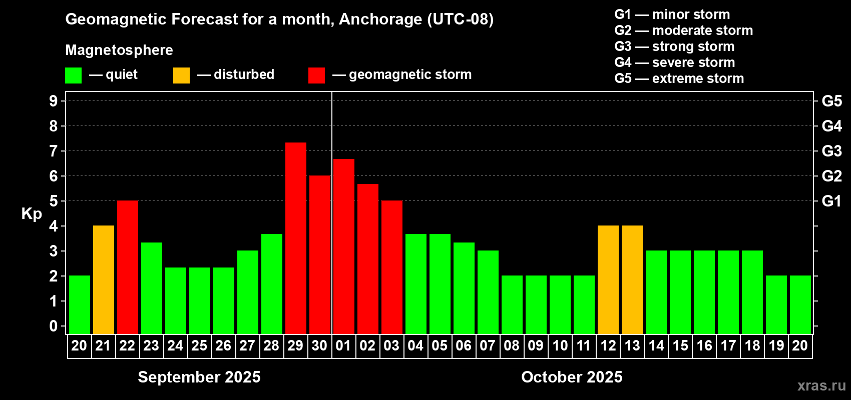 Geomagnetic storm forecast in Anchorage for Sep 20, 2025