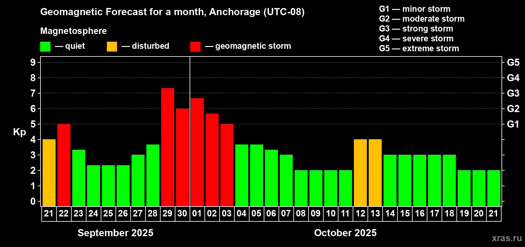 Geomagnetic storm forecast in Anchorage for Sep 21, 2025