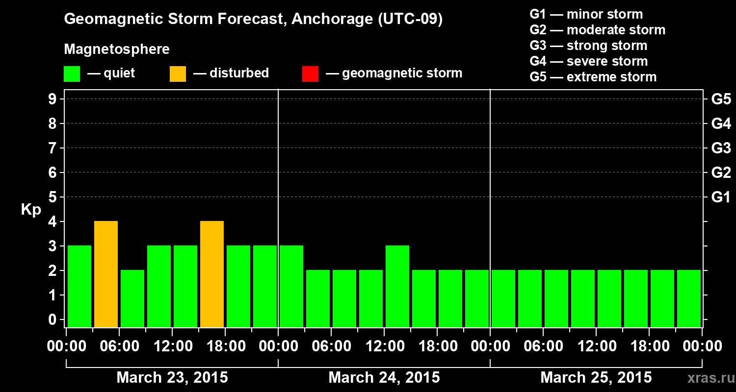 Geomagnetic storm forecast in Anchorage for Mar 23, 2015