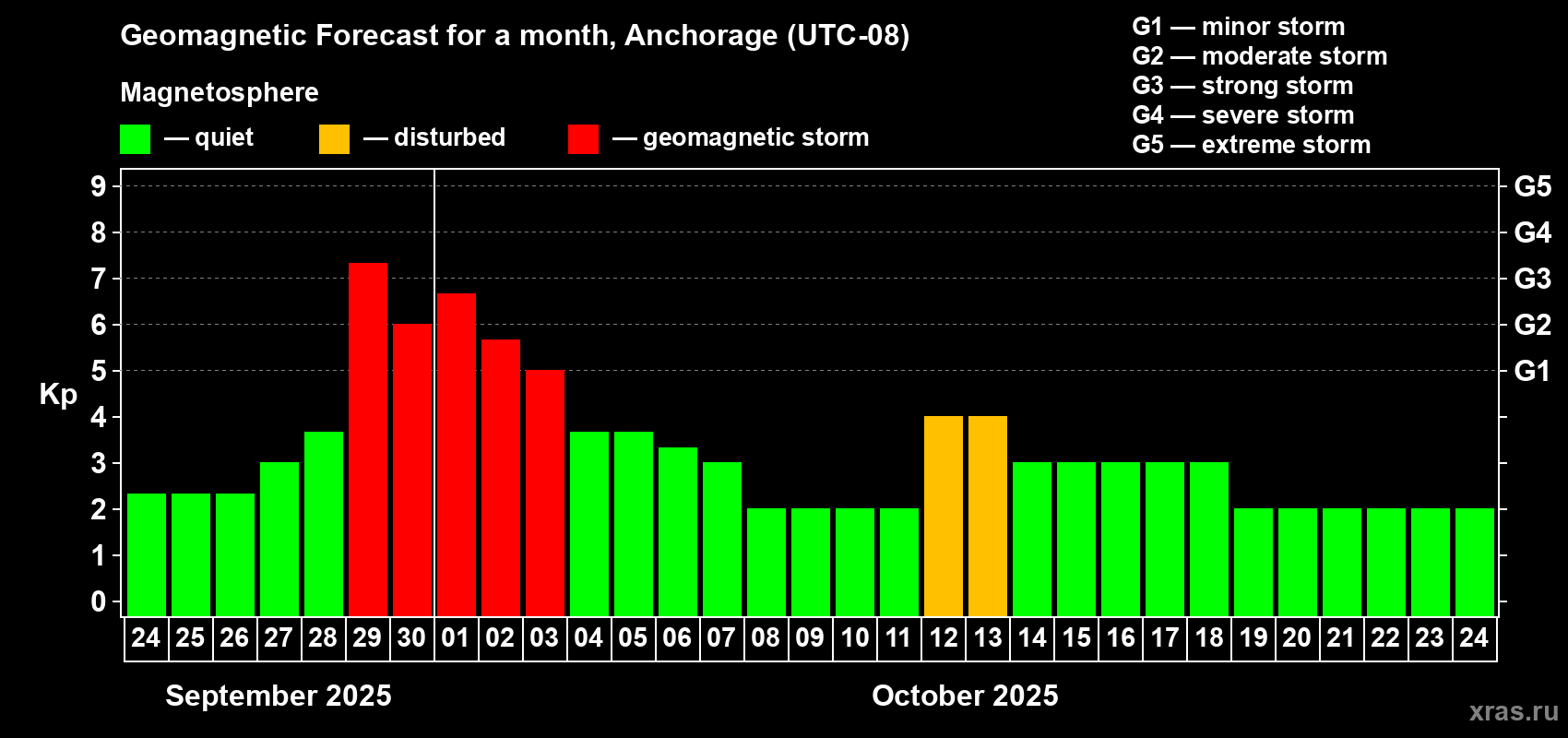 Geomagnetic storm forecast in Anchorage for Sep 24, 2025