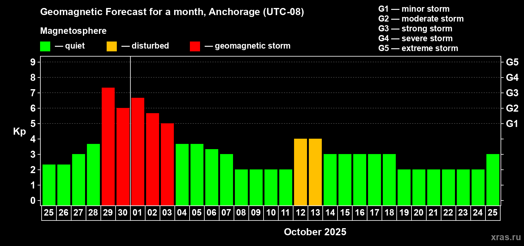 Geomagnetic storm forecast in Anchorage for Sep 25, 2025