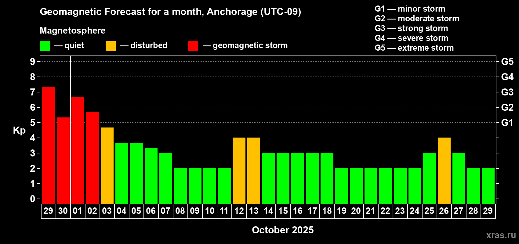 Geomagnetic storm forecast in Anchorage for Sep 29, 2025