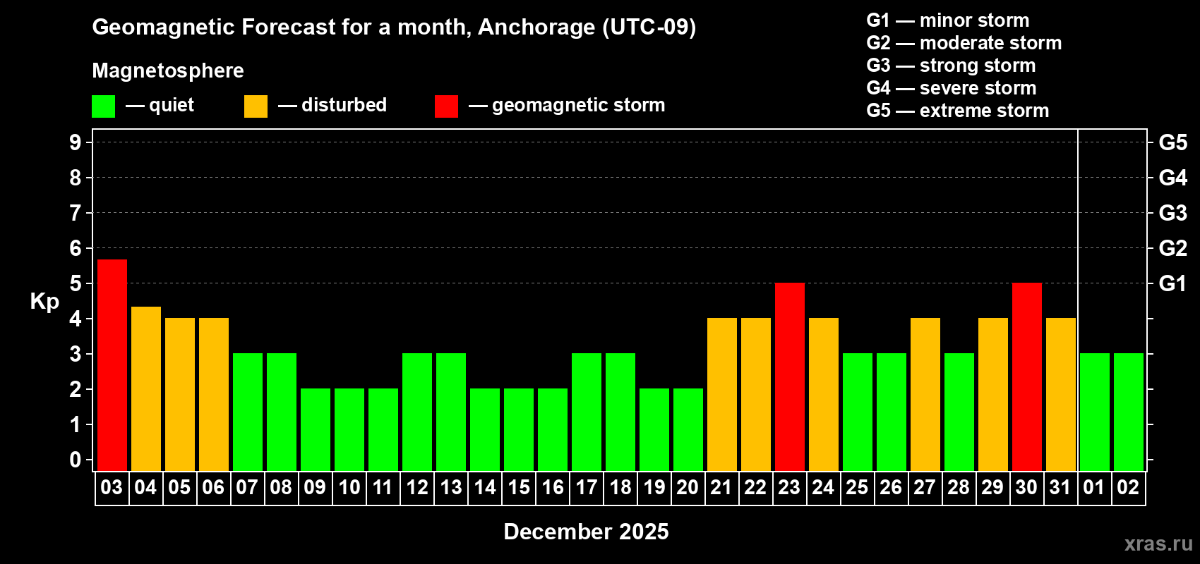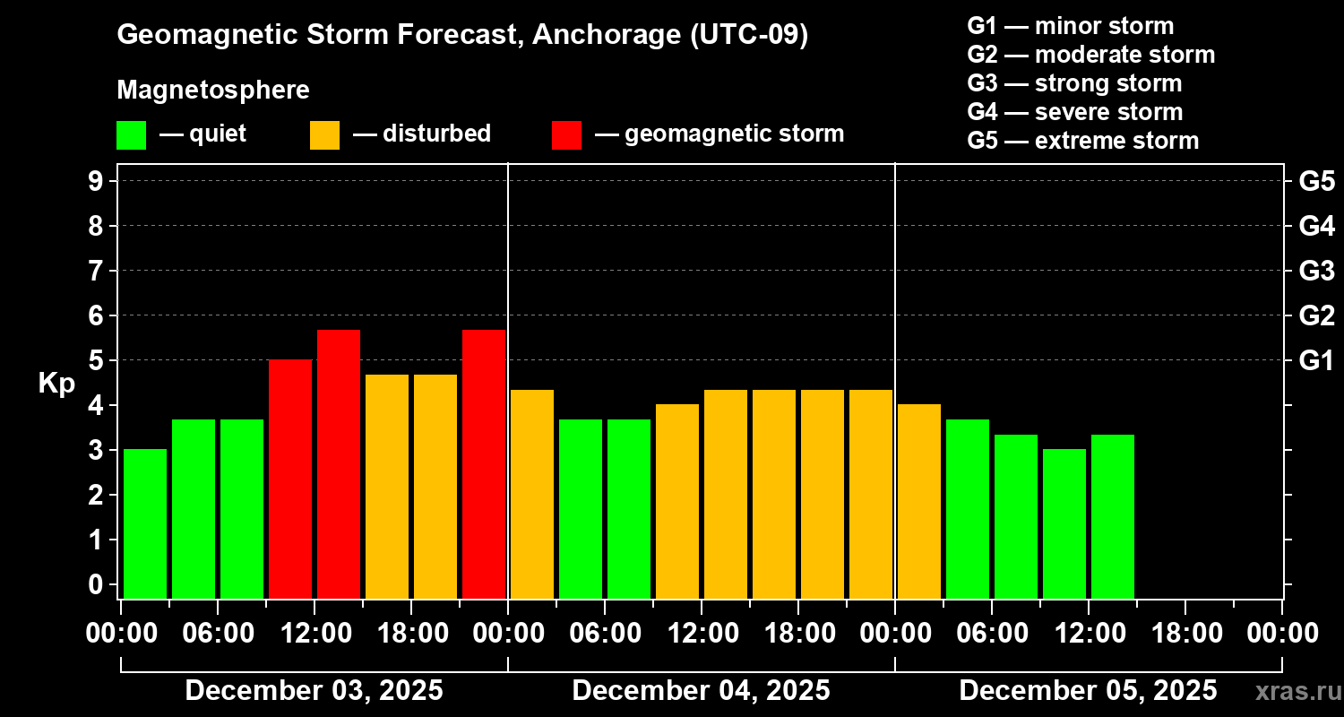 Geomagnetic storm forecast in Anchorage for Dec 03, 2025