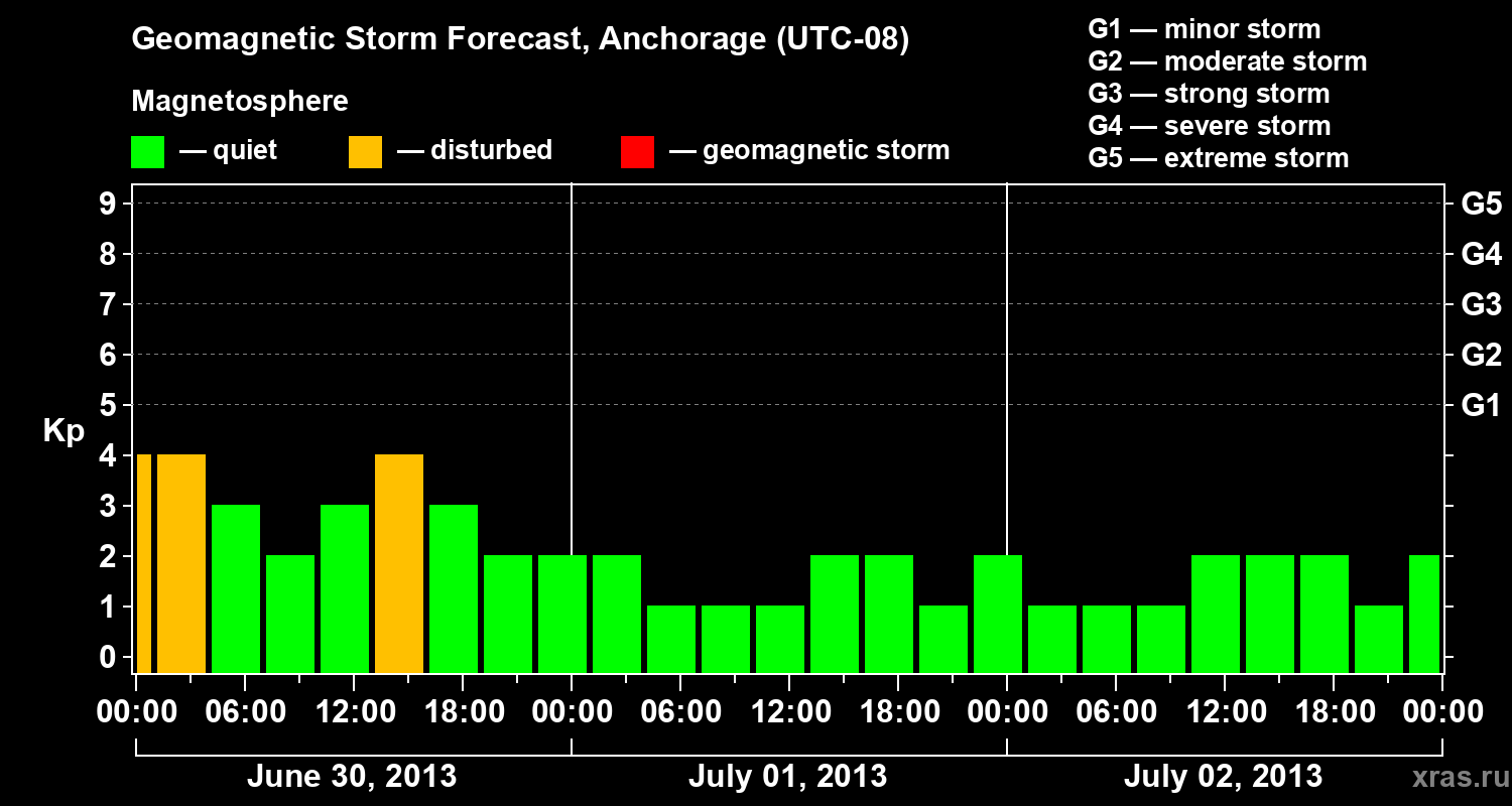 Geomagnetic storm forecast in Anchorage for Jun 30, 2013