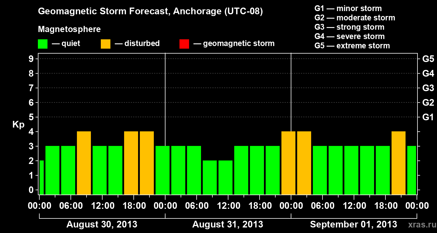 Geomagnetic storm forecast in Anchorage for Aug 30, 2013