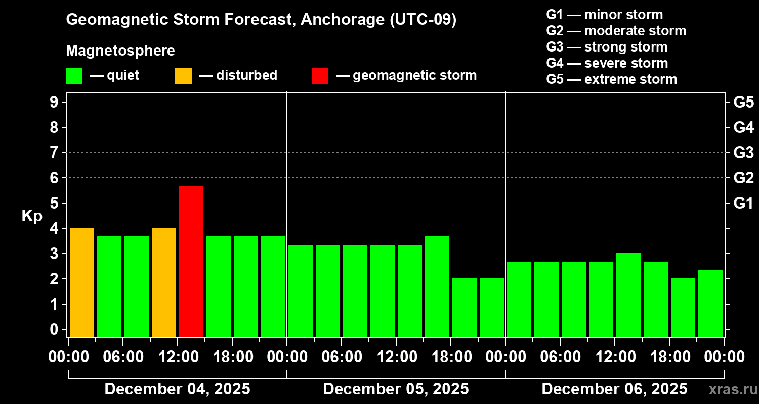 Geomagnetic storm forecast in Anchorage for Dec 04, 2025
