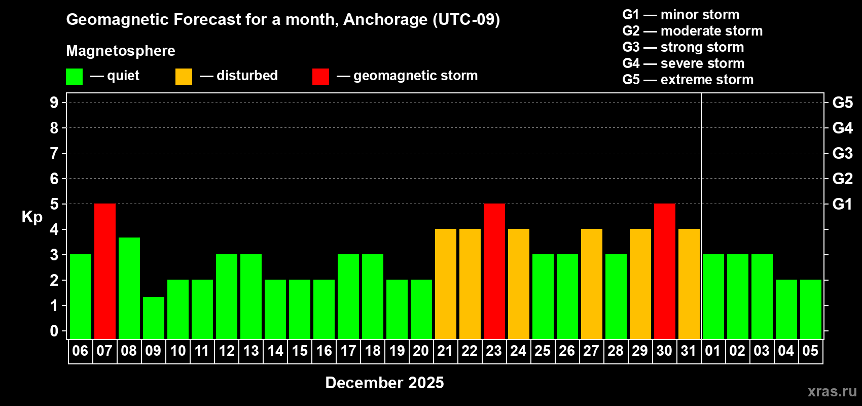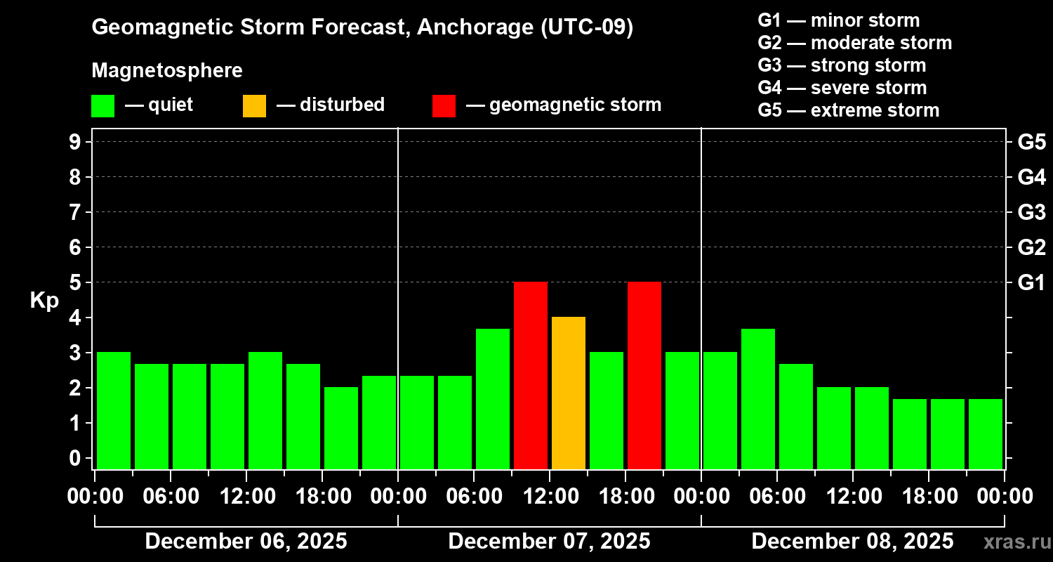 Geomagnetic storm forecast in Anchorage for Dec 06, 2025