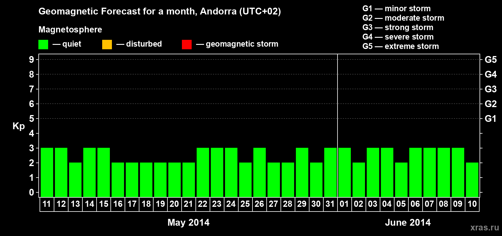Geomagnetic storm forecast in Andorra for May 11, 2014