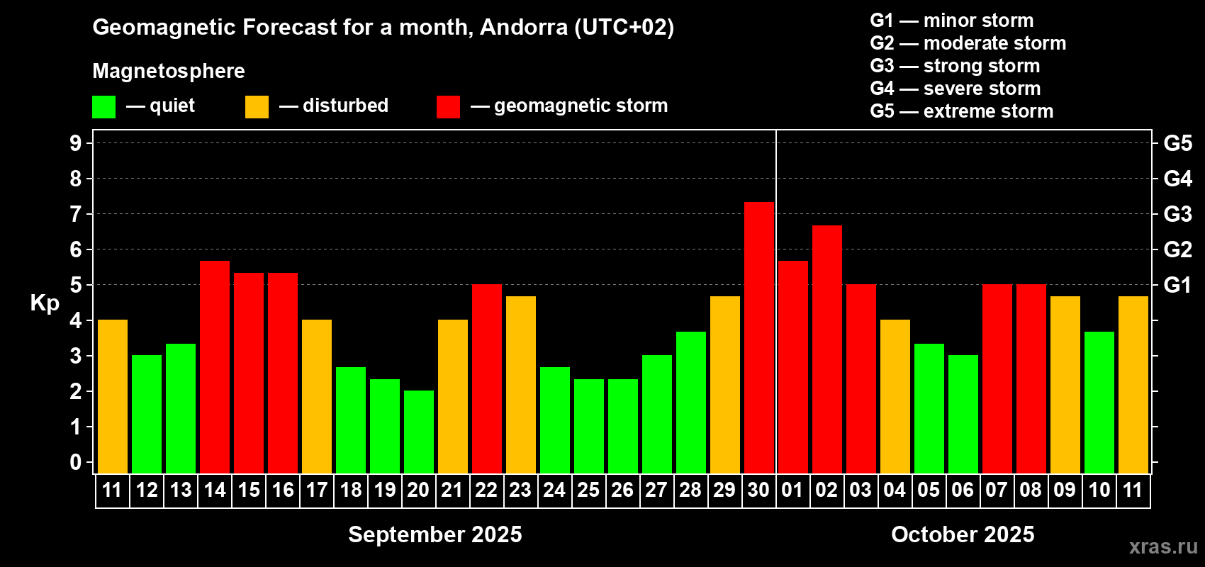 Geomagnetic storm forecast in Andorra for Sep 11, 2025