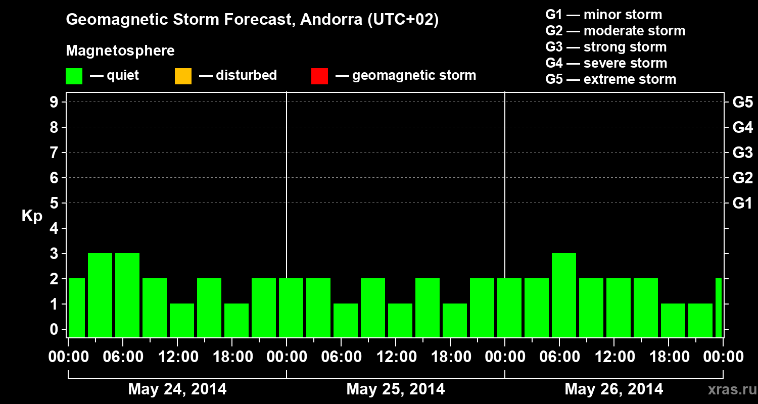Geomagnetic storm forecast in Andorra for May 24, 2014