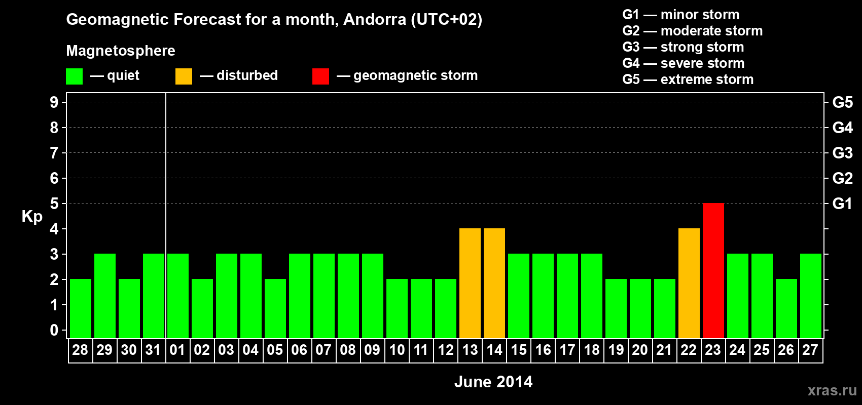 Geomagnetic storm forecast in Andorra for May 28, 2014