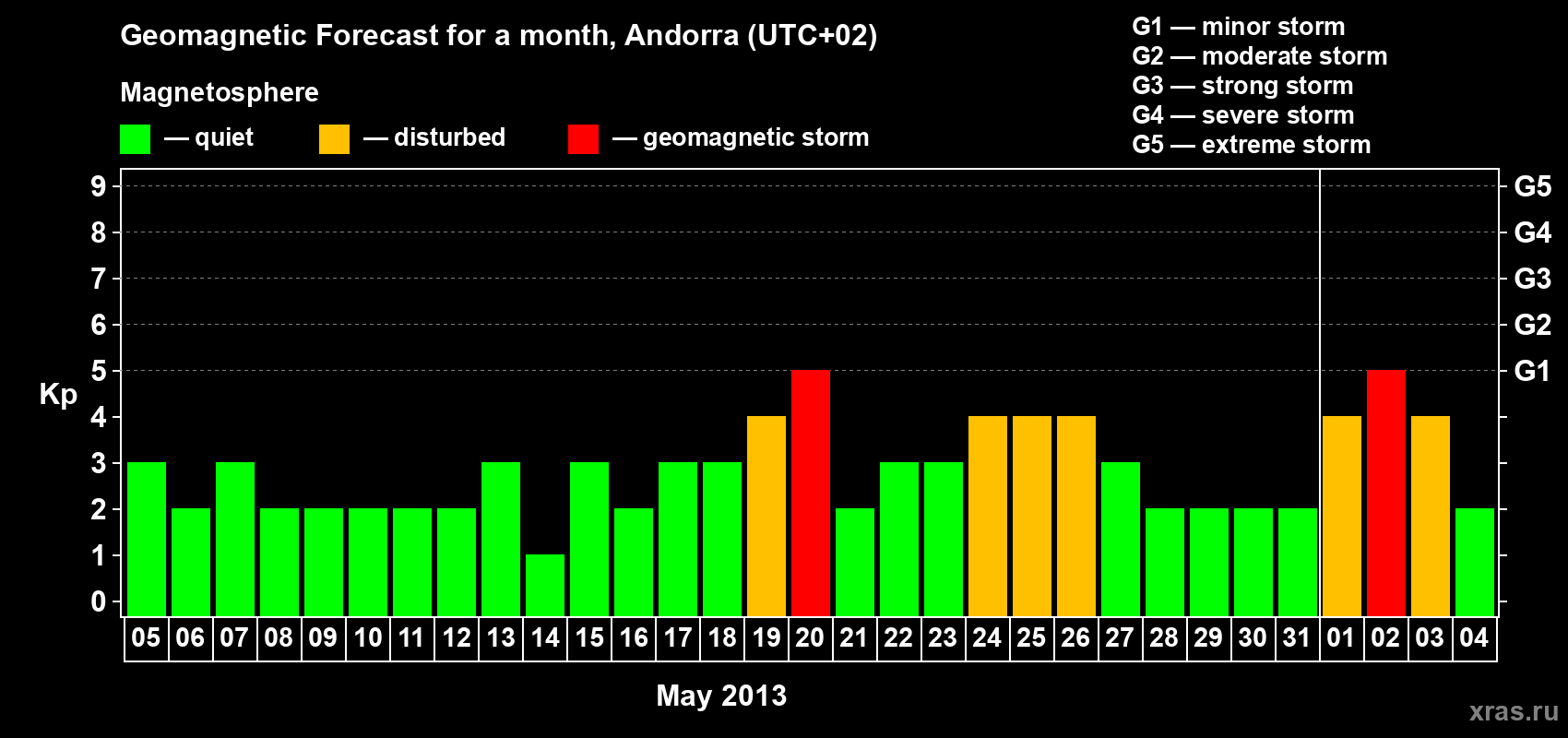 Geomagnetic storm forecast in Andorra for May 05, 2013
