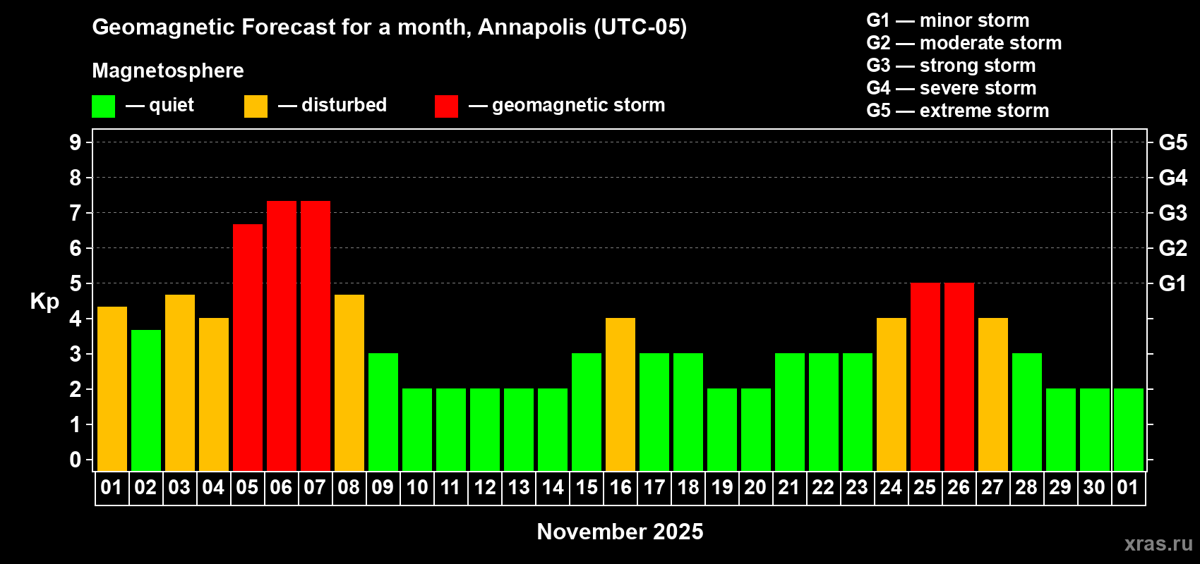Geomagnetic storm forecast in Annapolis for Nov 01, 2025