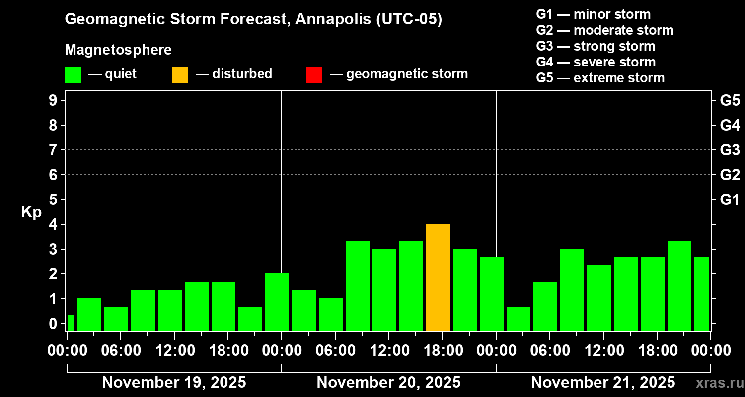 Geomagnetic storm forecast in Annapolis for Nov 19, 2025
