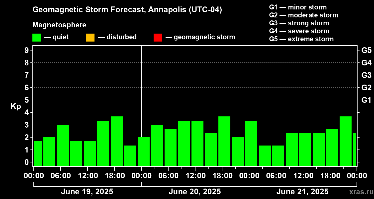 Geomagnetic storm forecast in Annapolis for Jun 19, 2025