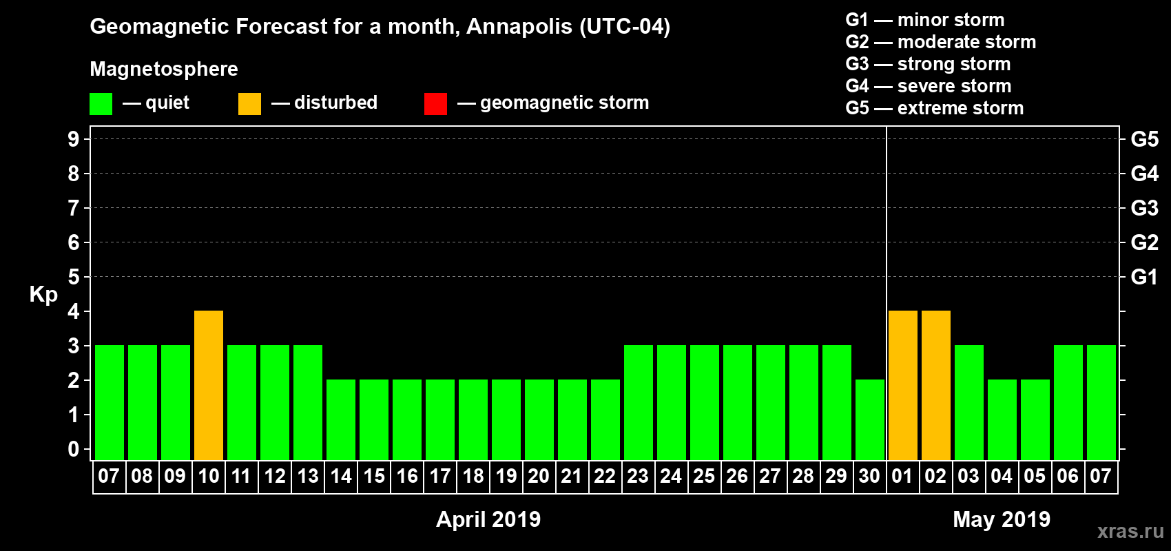 Geomagnetic storm forecast in Annapolis for Apr 07, 2019