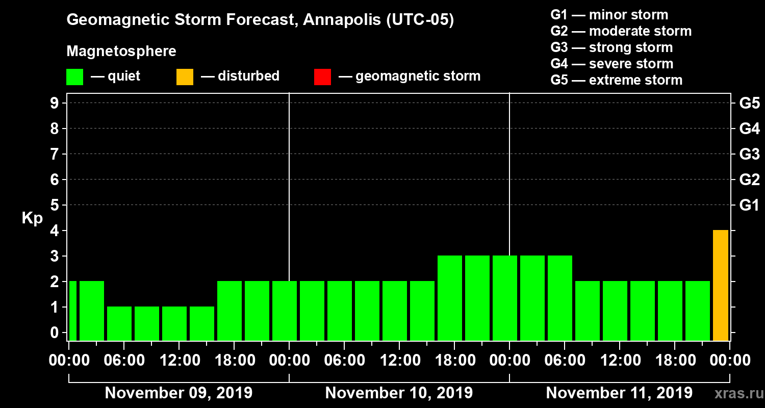 Geomagnetic storm forecast in Annapolis for Nov 09, 2019