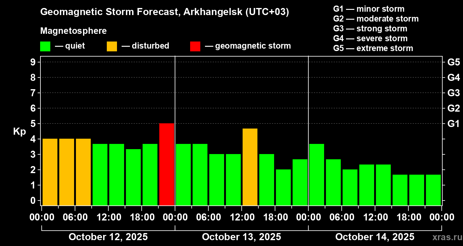 Geomagnetic storm forecast in Arkhangelsk for Oct 12, 2025