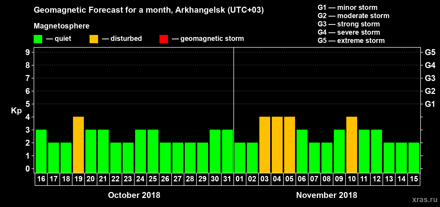 Geomagnetic storm forecast in Arkhangelsk for Oct 16, 2018