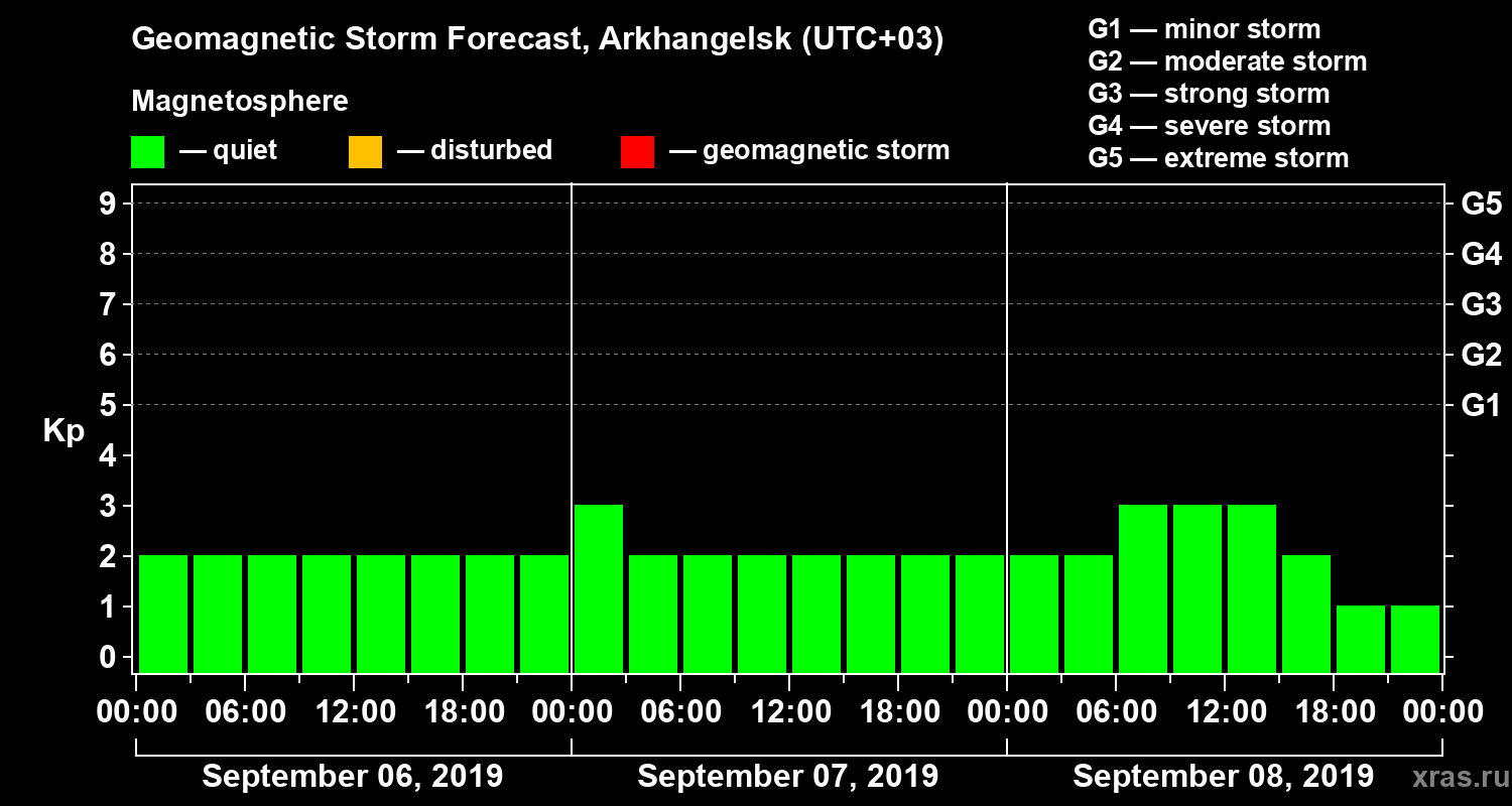 Geomagnetic storm forecast in Arkhangelsk for Sep 06, 2019