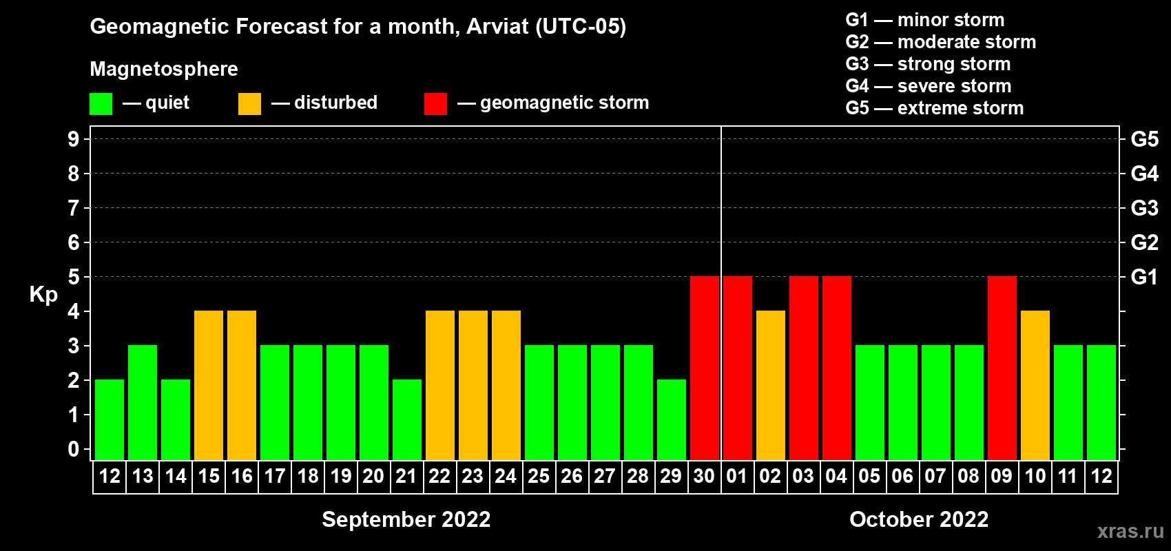Geomagnetic storm forecast in Arviat for Sep 12, 2022