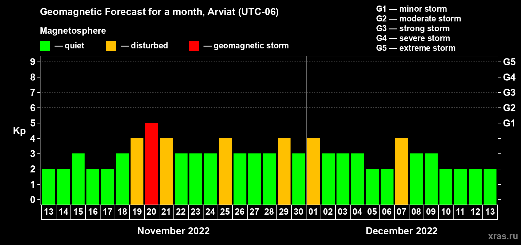 Geomagnetic storm forecast in Arviat for Nov 13, 2022