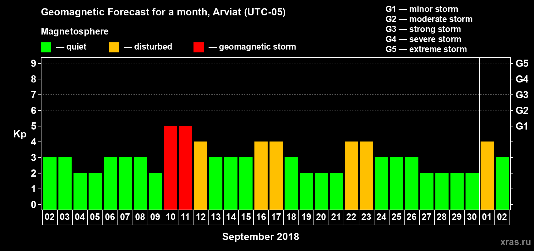 Geomagnetic storm forecast in Arviat for Sep 02, 2018