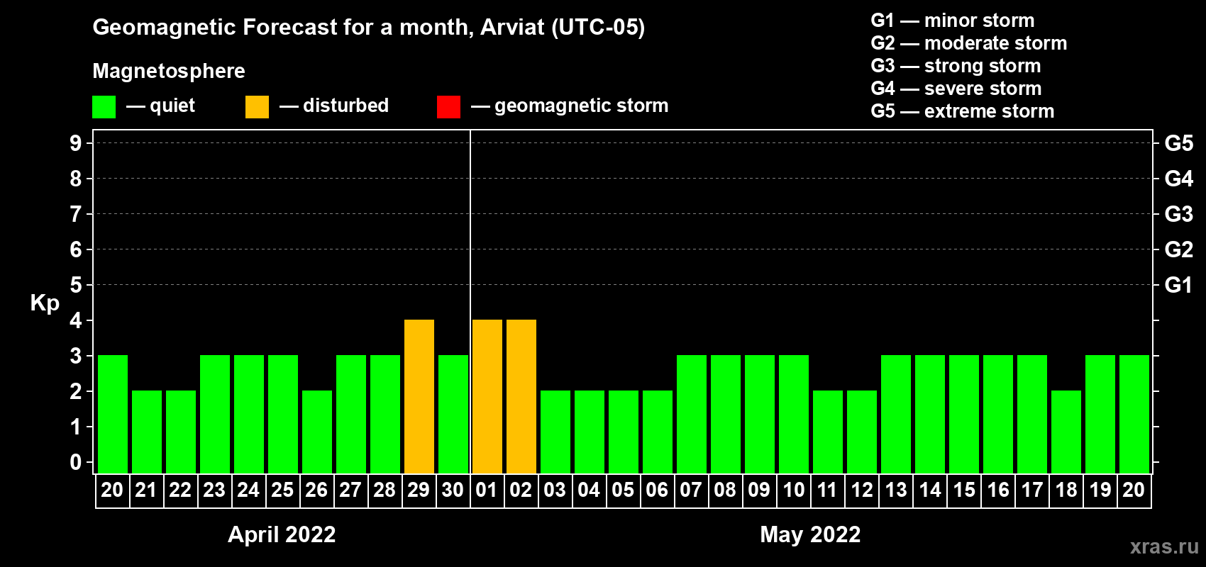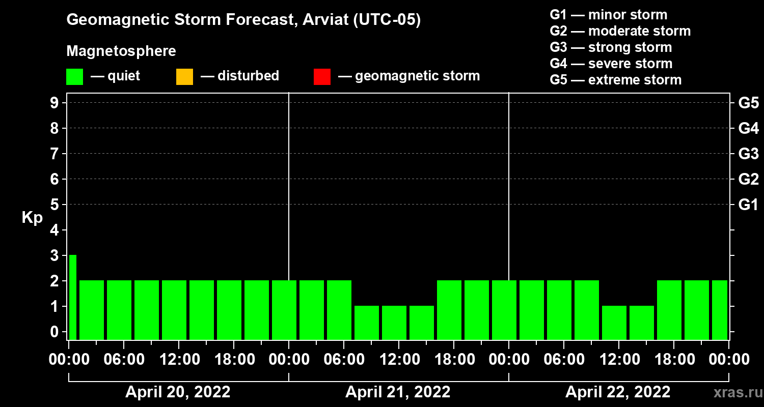 Geomagnetic storm forecast in Arviat for Apr 20, 2022