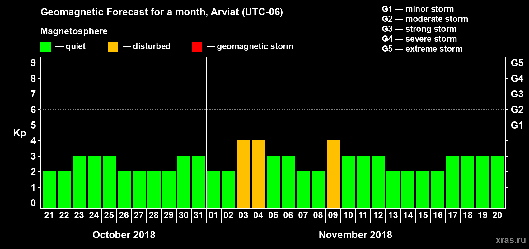 Geomagnetic activity forecast in Arviat — Oct 21, 2018
