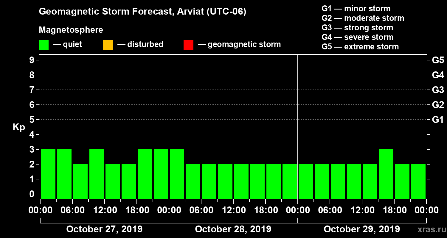 Geomagnetic storm forecast in Arviat for Oct 27, 2019
