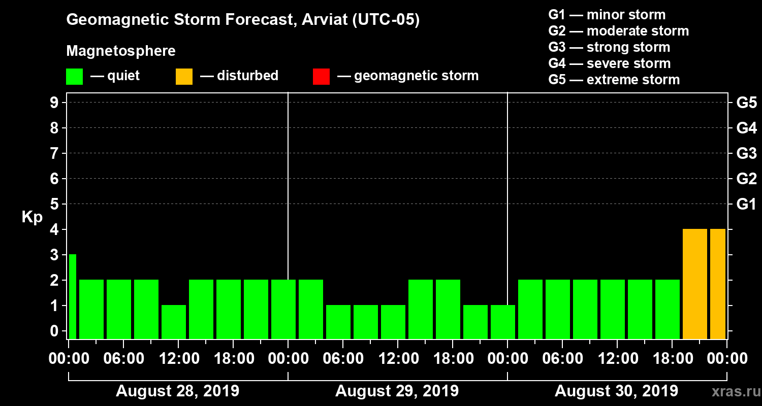 Geomagnetic storm forecast in Arviat for Aug 28, 2019