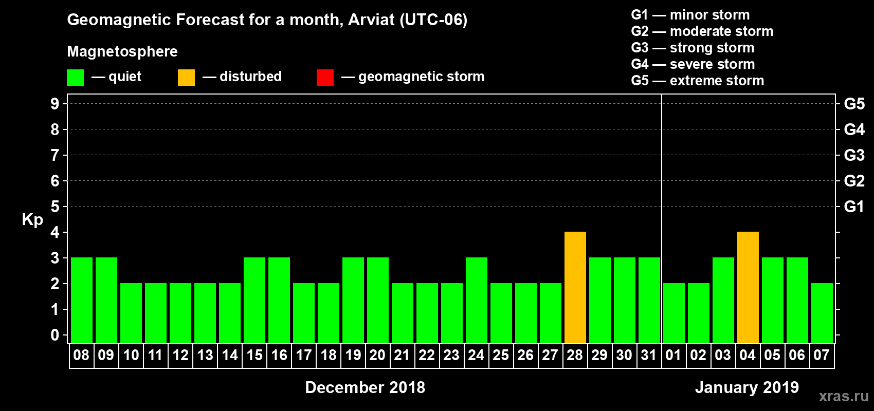 Geomagnetic storm forecast in Arviat for Dec 08, 2018