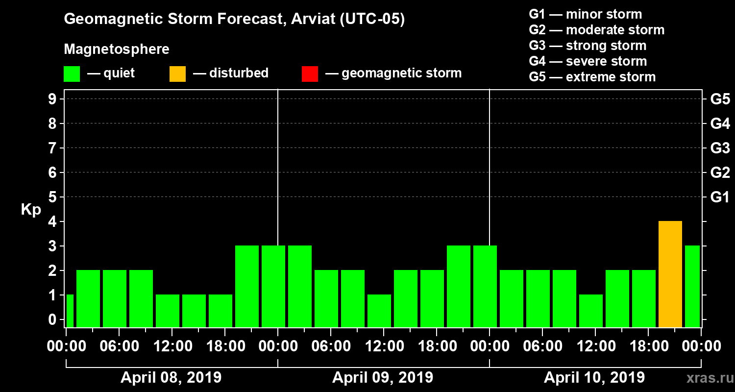 Geomagnetic storm forecast in Arviat for Apr 08, 2019