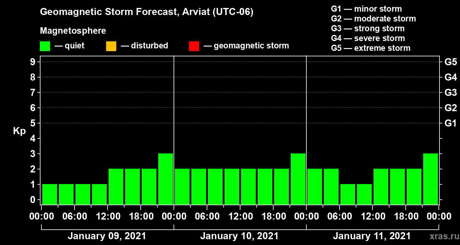 Geomagnetic storm forecast in Arviat for Jan 09, 2021