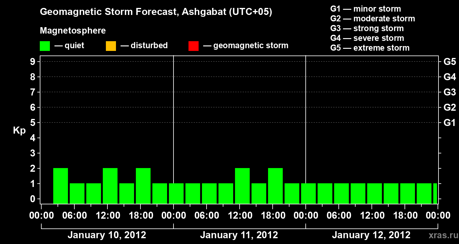 Geomagnetic storm forecast in Ashgabat for Jan 10, 2012