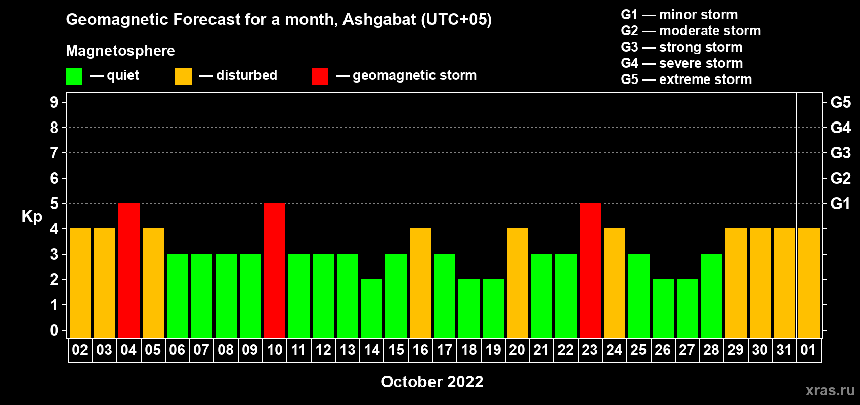 Geomagnetic storm forecast in Ashgabat for Oct 02, 2022