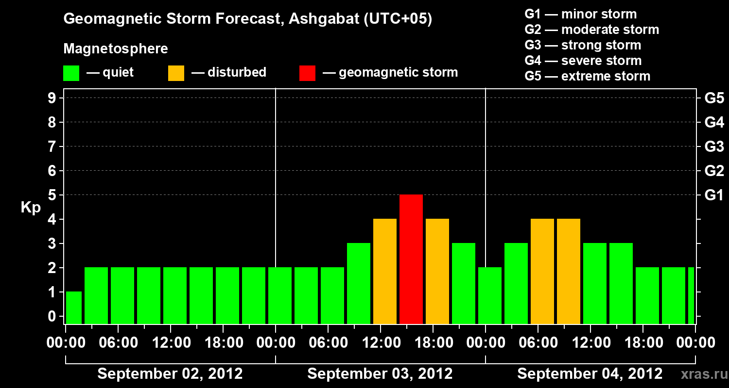 Geomagnetic storm forecast in Ashgabat for Sep 02, 2012