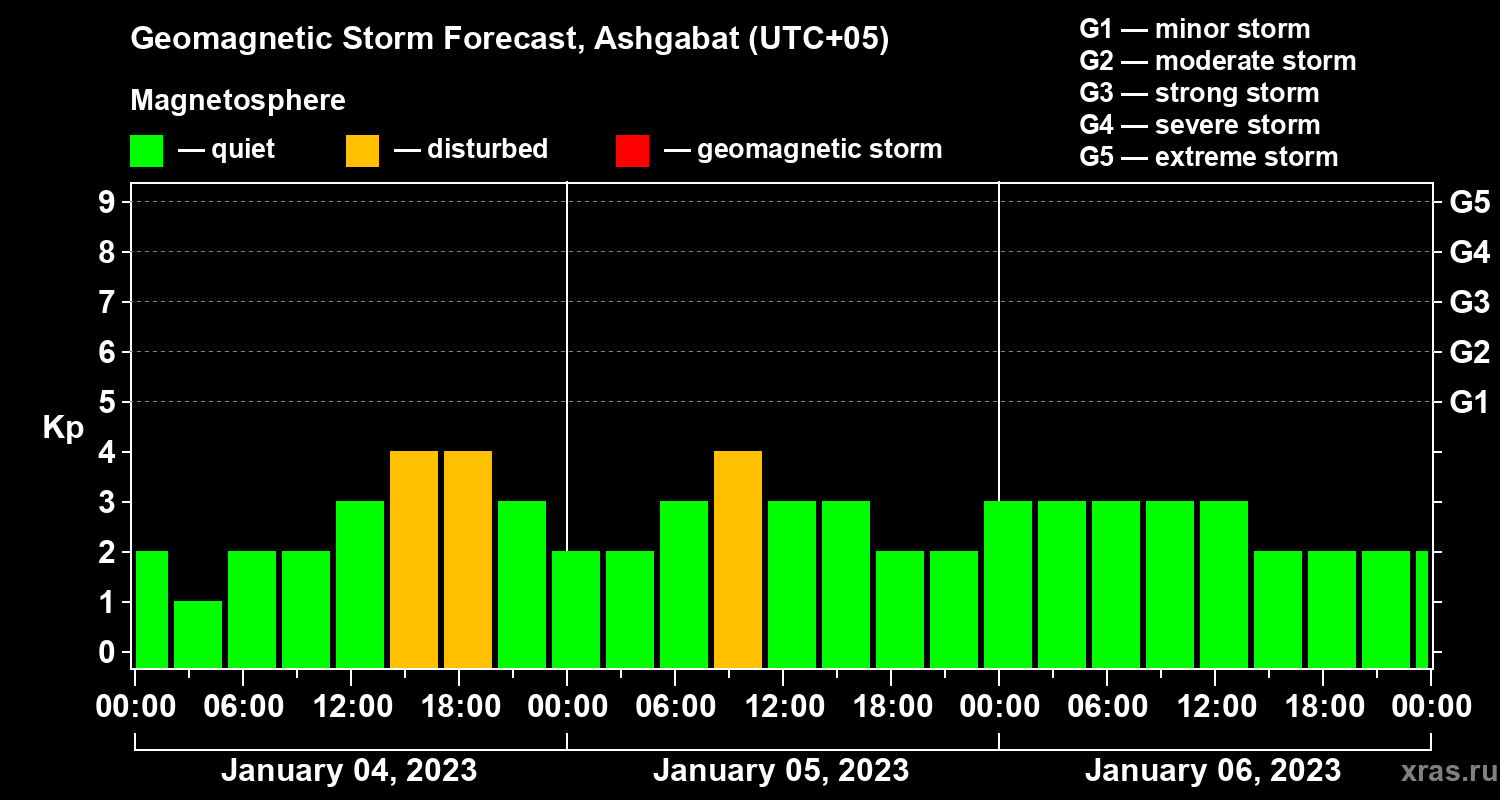 Geomagnetic storm forecast in Ashgabat for Jan 04, 2023