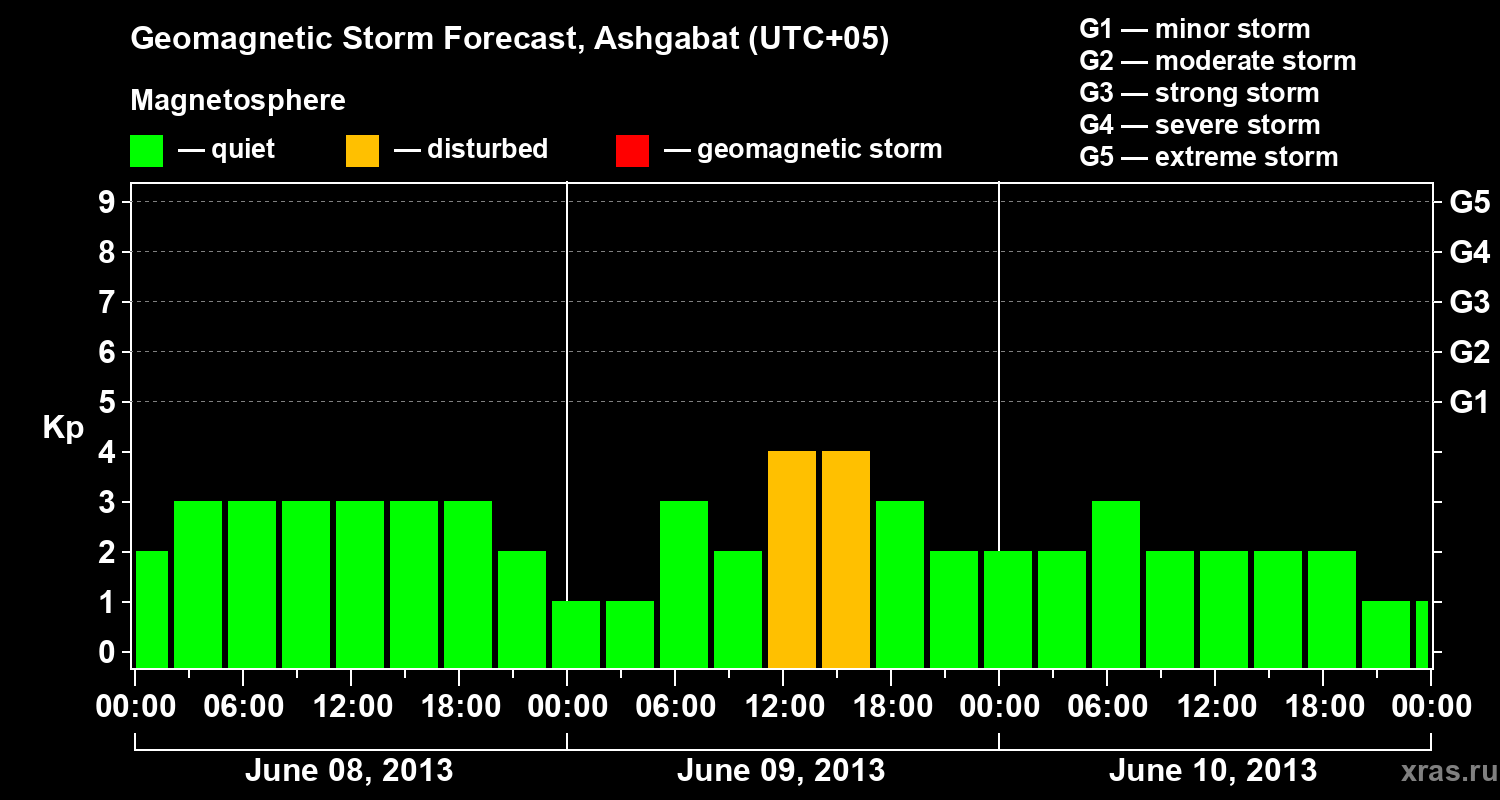 Geomagnetic storm forecast in Ashgabat for Jun 08, 2013