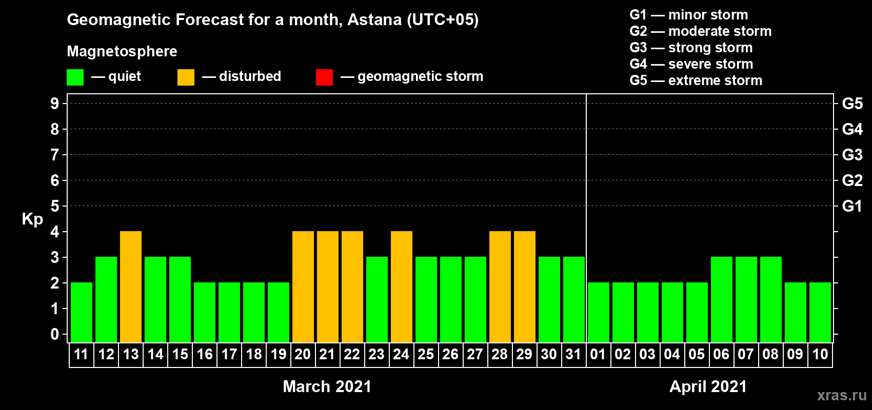Geomagnetic activity forecast in Astana — Mar 11, 2021