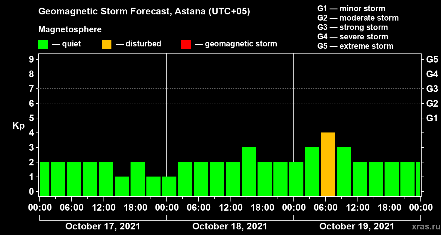 Geomagnetic storm forecast in Astana for Oct 17, 2021