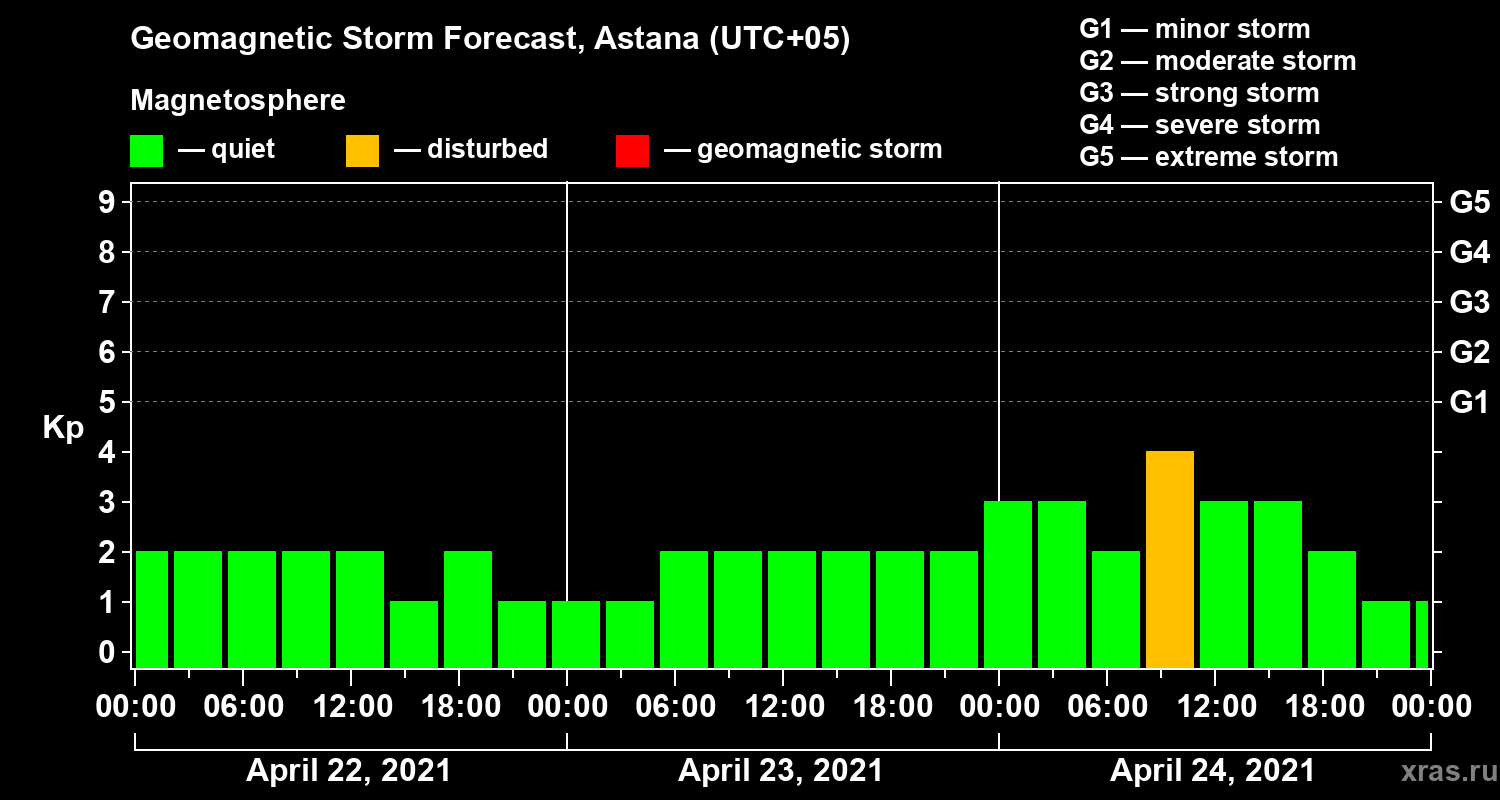 Geomagnetic storm forecast in Astana for Apr 22, 2021